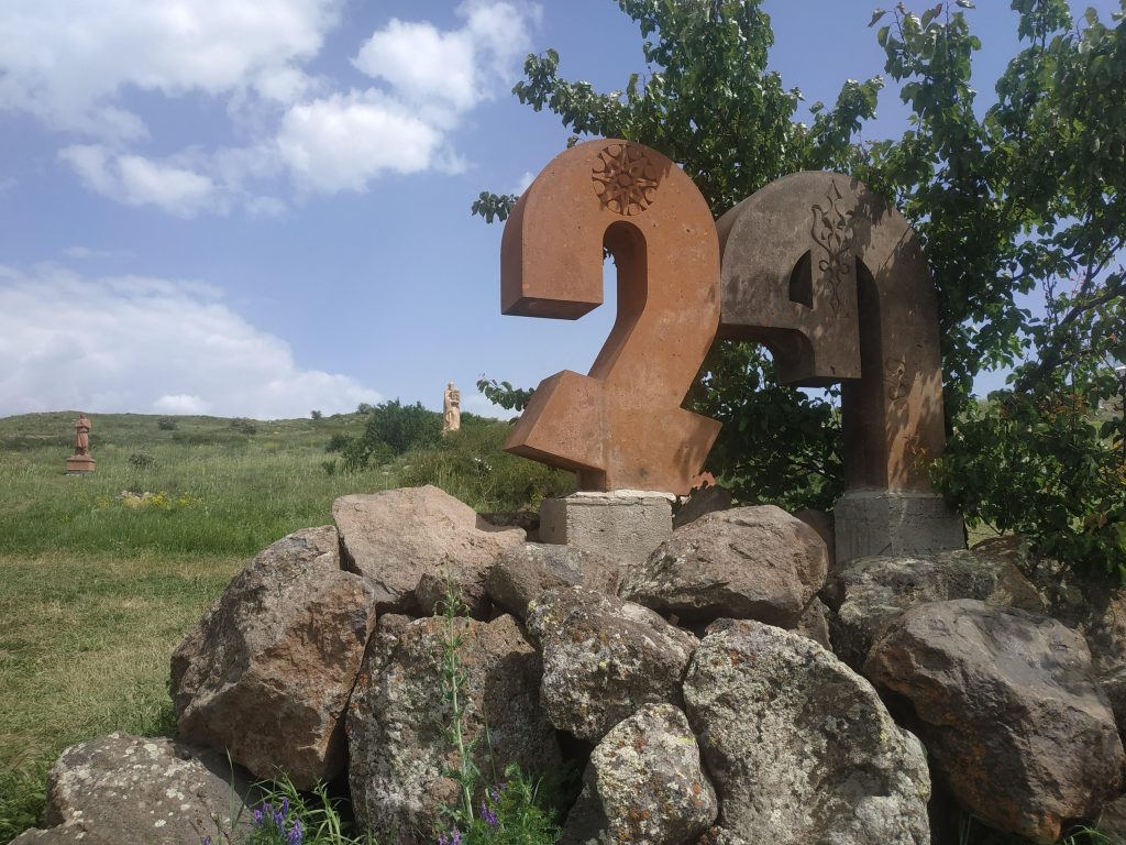 Arrêt inattendu pour cet ensemble sculptural à la gloire de l’inventeur de l’alphabet Arménien. L’hommage date de 2005 mais la statuaire possède encore les codes de l’architecture soviétique. Chaque lettre est sculptée dans un bloc de tufe.
