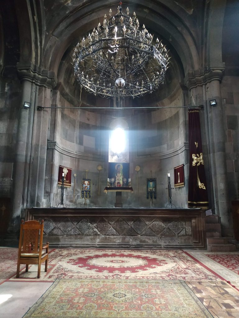 Et puis on poursuit jusqu’au monastère d’Haritchavank, dans un village isolé de tout. Ici pas de bus scolaires, de cohue de visiteurs ni même de bibelots à vendre. Le site est à 2500 mètres d’altitude.