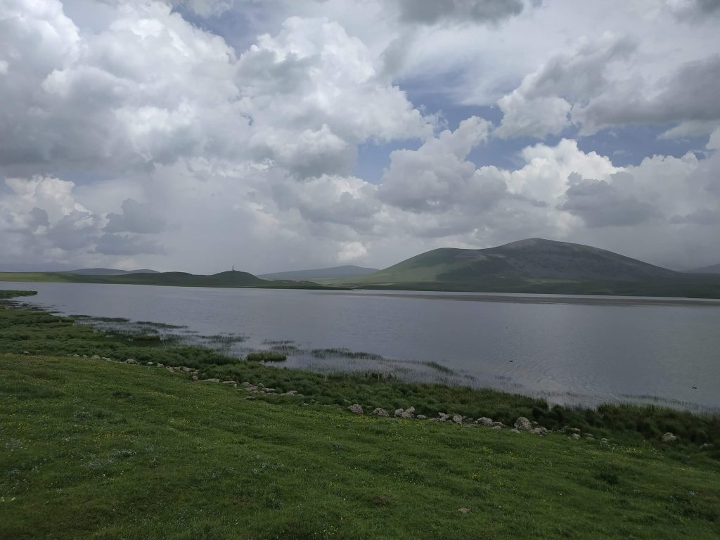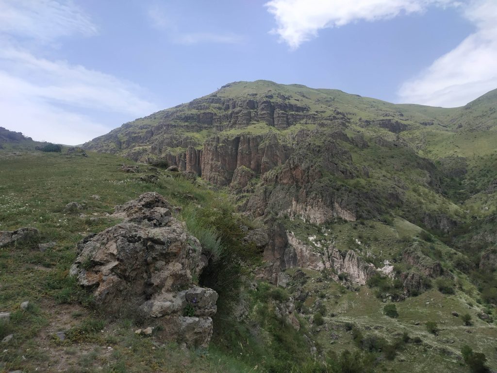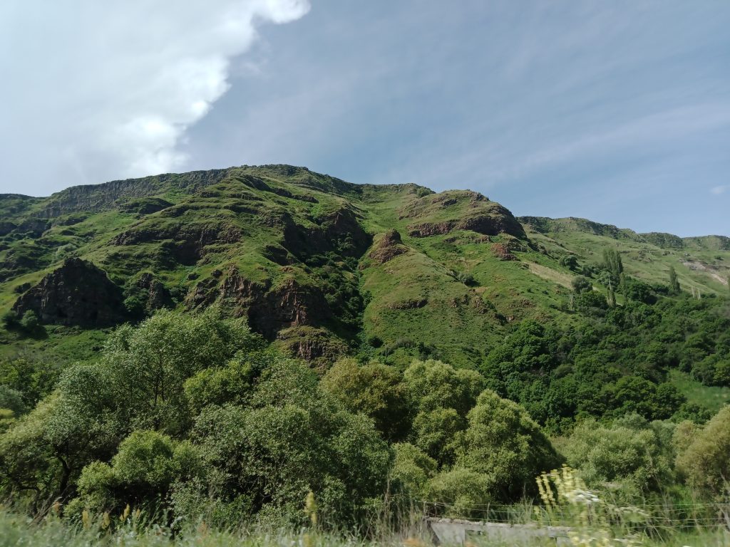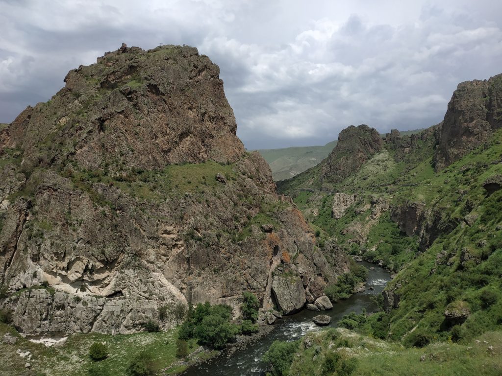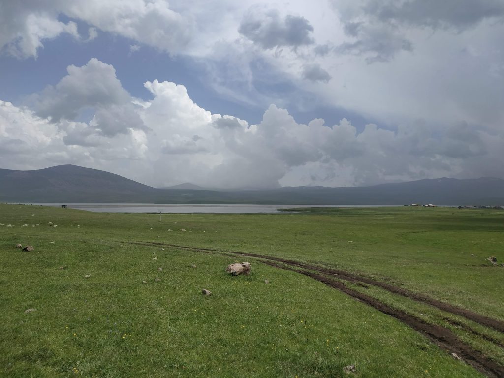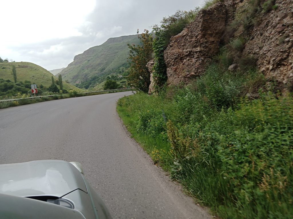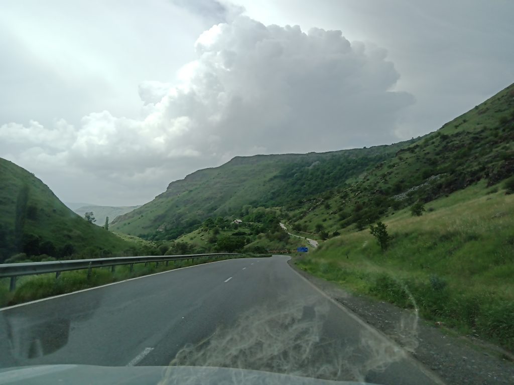 On a de suite pris une route magnifique, dès la sortie de la ville, on a roulé plein nord et à mesure qu’on quittait la ville, une Arménie nouvelle se dévoilait, bien différente de celle par laquelle nous étions entrés. Plus rurale, moins dense, plus intense avec ses paturages vallonnés et comme sans fin, si ce n’est, très très loin, les montagnes enneigées, des 3000 blanc et gris bleus.