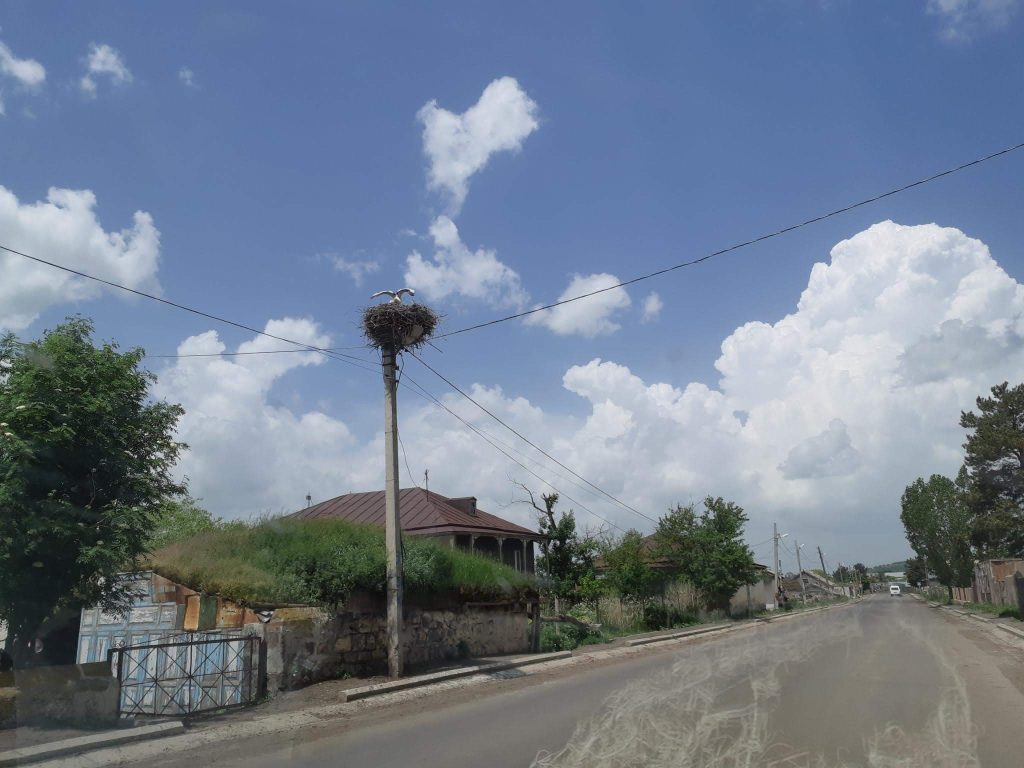 Dans chaque village traversé ensuite, des cigognes dans leur nids, nourissant de grands dadets bientôt prêts à faire leur premier vol du haut de leur poteau électrique.