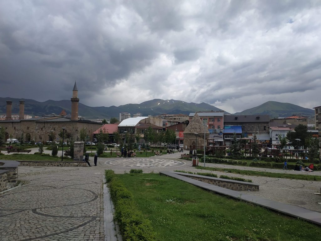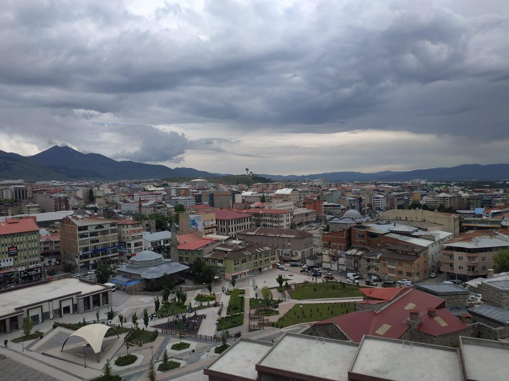 Puis nous arrivons dans Erzerum, la ville la plus haute de Turquie, avec ses 1945 mètres. Elle abritait 545.000 habitants en 2008, mais on en pas du tout l’impression. Nathalie lui trouve des airs de Chamonix, et moi de Grenoble, dans les deux cas, d’une ville au coeur des montagnes.