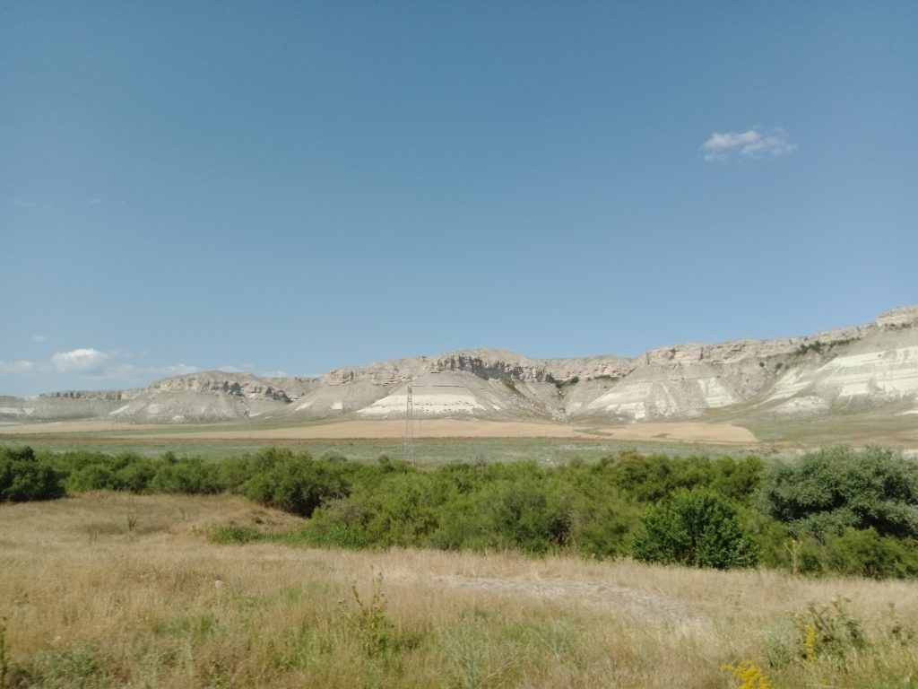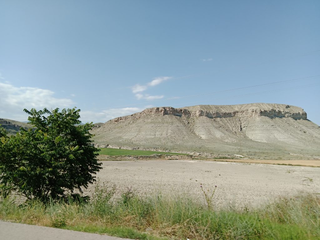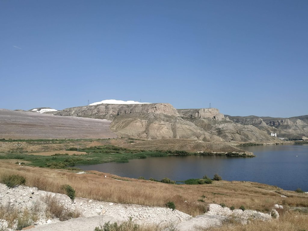 Ce n’est pas de la neige au loin sur cette montagne mais une roche très blanche, tout comme sur le site de Pamukale.