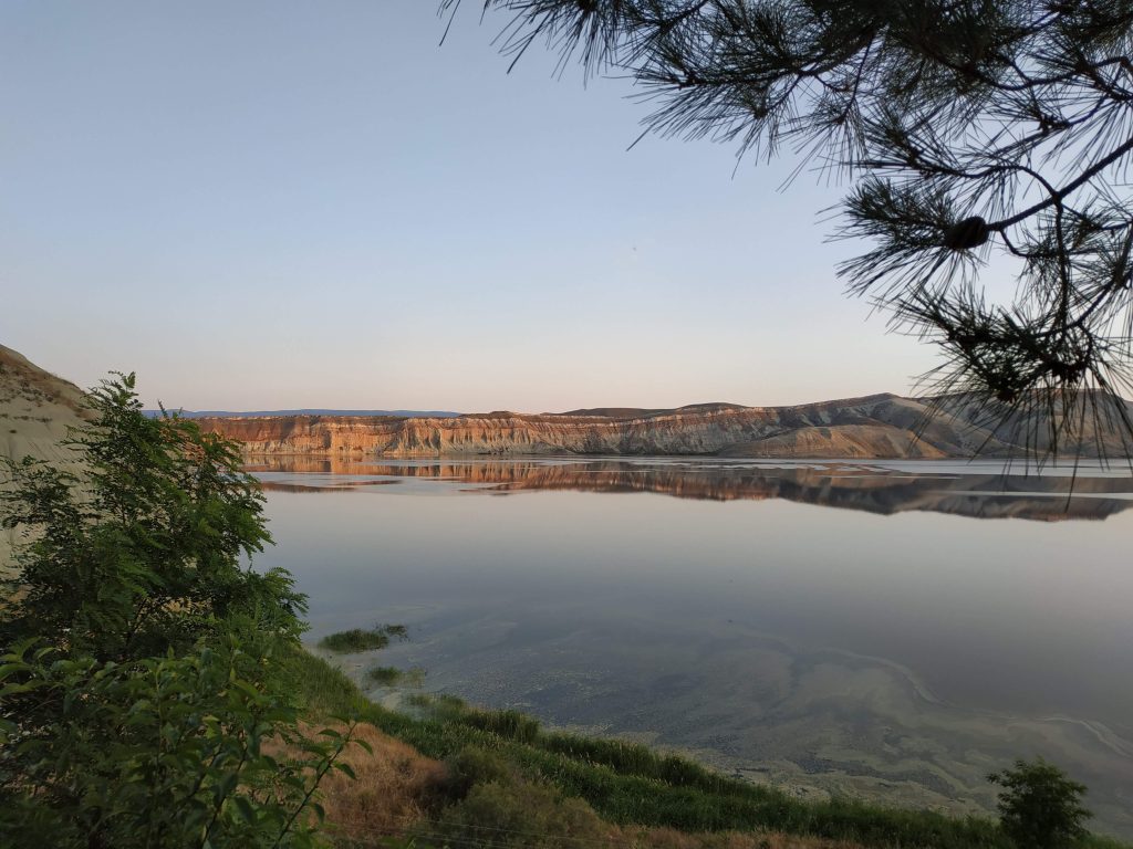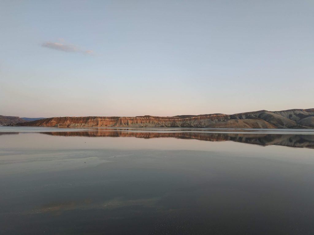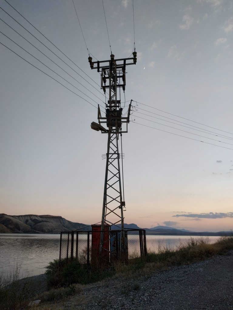 Les roches grises vertes des montagnes alentours nous paraissent pouvoir être de l’amiante… Des mines en fin de cycle d’extraction ? Inondées pour les besoins de la production électrique du barrage ?