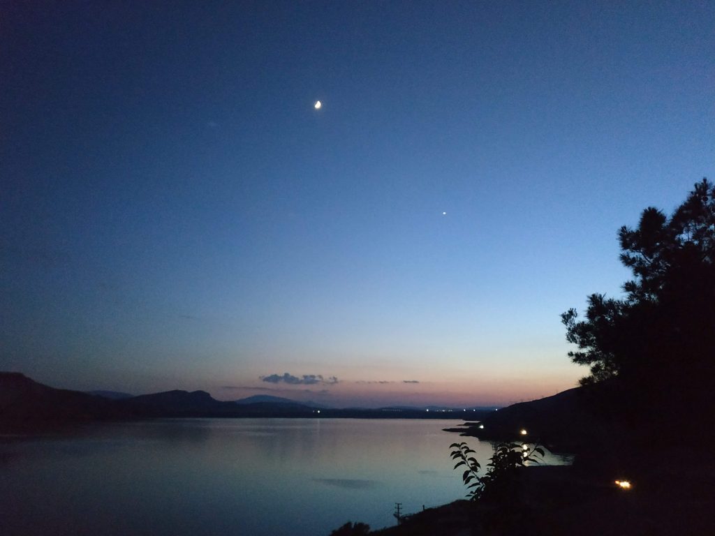 A l’heure du coucher, la lune a rendez vous avec Vénus pour quelques jours encore.