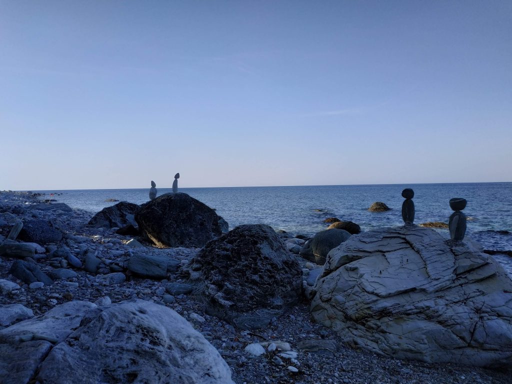 Sculptures aidées, cailloux posés.