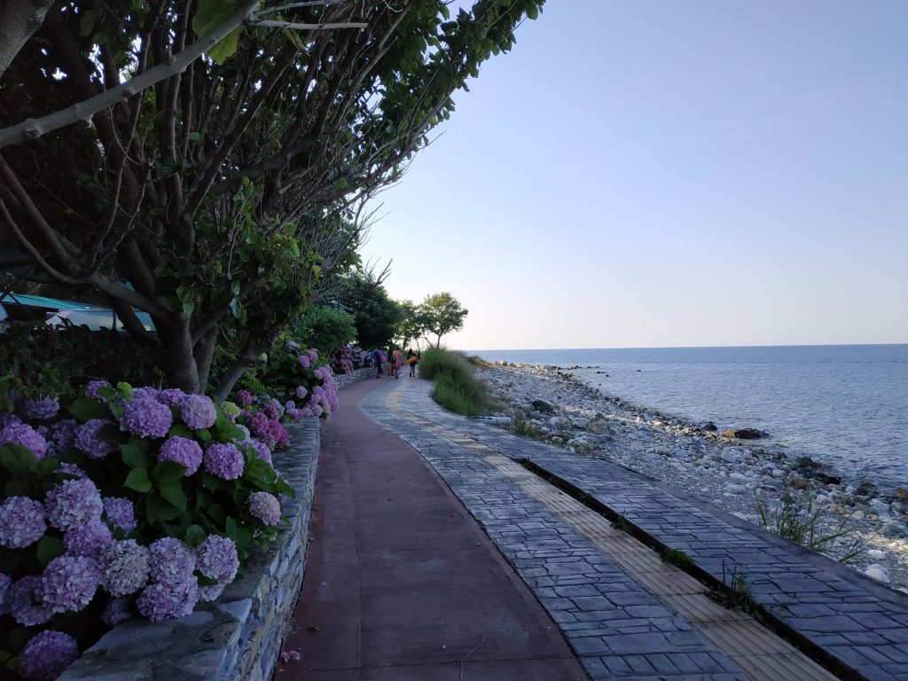 Eux grillent des côtes de porc de leur région, nous des saucisses Grecques. On repartira du barbecue avec une côte de porc italienne et ils nous apporteront des noix.