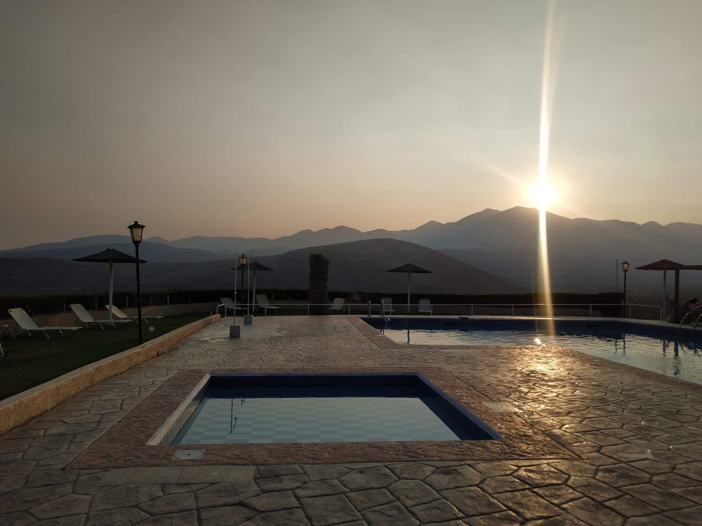 La « mer d’oliviers » vue depuis notre emplacement. Au bout, la mer. C’est évidemment très loin pour une baignade, raison pour laquelle il y a ici une piscine à la fraîcheur bienvenue.