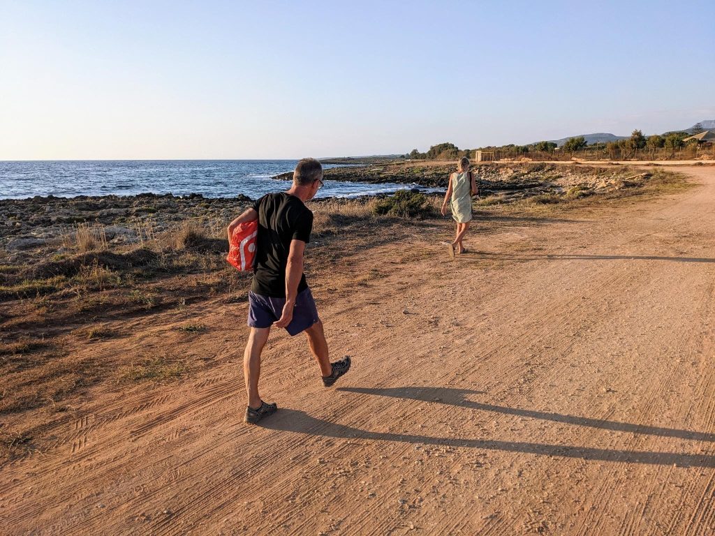On aura une étape un peu plus longue que ces derniers temps. Mais surtout, on va quitter la côte pour mettre le cap sur le site archéologique de Messini via les montagnes. La monotonie de la plage sera rompue. Puis on retournera sur Kalamata, où on restera jusqu’à jeudi pour accompagner Brigitte à son avion retour sur Paris, après quoi nous aussi on va se replier gentiment…