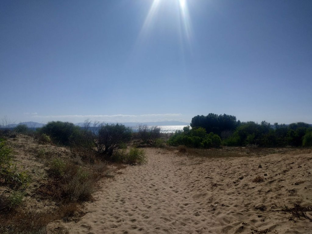 Ici la plage de Killini à quelques kilomètres de là. Nous y avons cherché d’anciens bains de boue historiques, et trouvé… un grand complexe résidentiel tout neuf et standardisé…