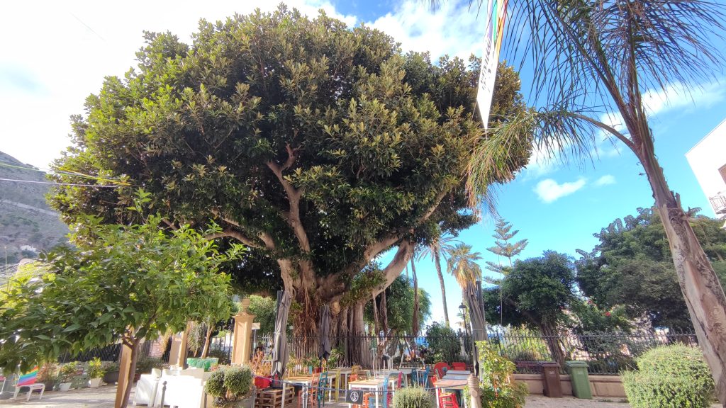 Et dans les ruelles montantes du port vers la haute ville, cette petite place aux dimensions de celle d’un village a la taille pour accueillir un jardin municipal, des jeux d’enfants, et un spécimen de caoutchouc parfaitement hors normes.