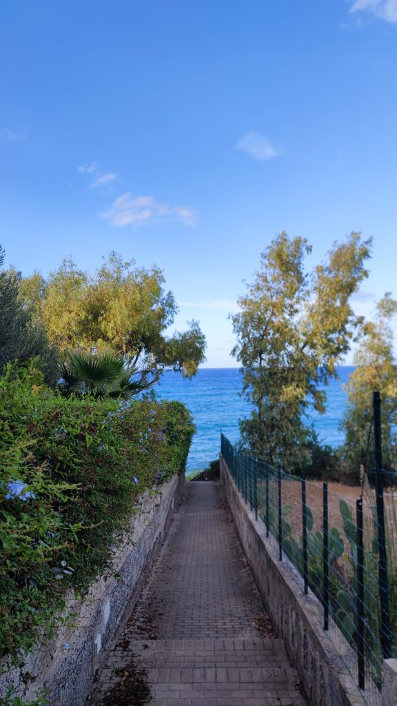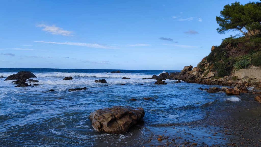 En suivant la côte à pied – très rare et difficile en Italie car tout est privatisé avec barrières, fil barbelé, menace de chiens méchants et caméras vidéos, héritage sans doute de l’ère télévisuelle Berlusconienne – on trouve parfois la possibilité d’aller au bout d’un chemin d’où on peut trouver librement la mer.