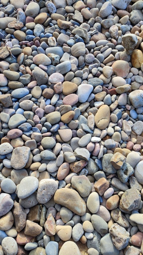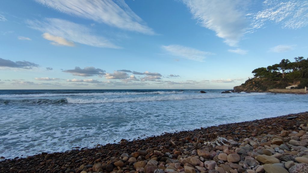 La plage est en beaux galets, une fois dans l’eau et après quelques mètres, c’est du sable !