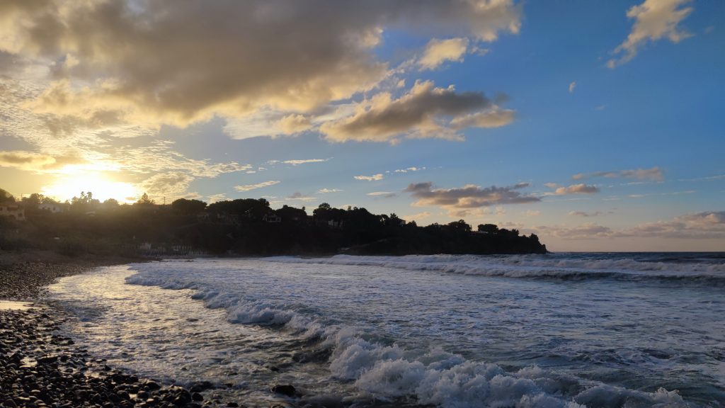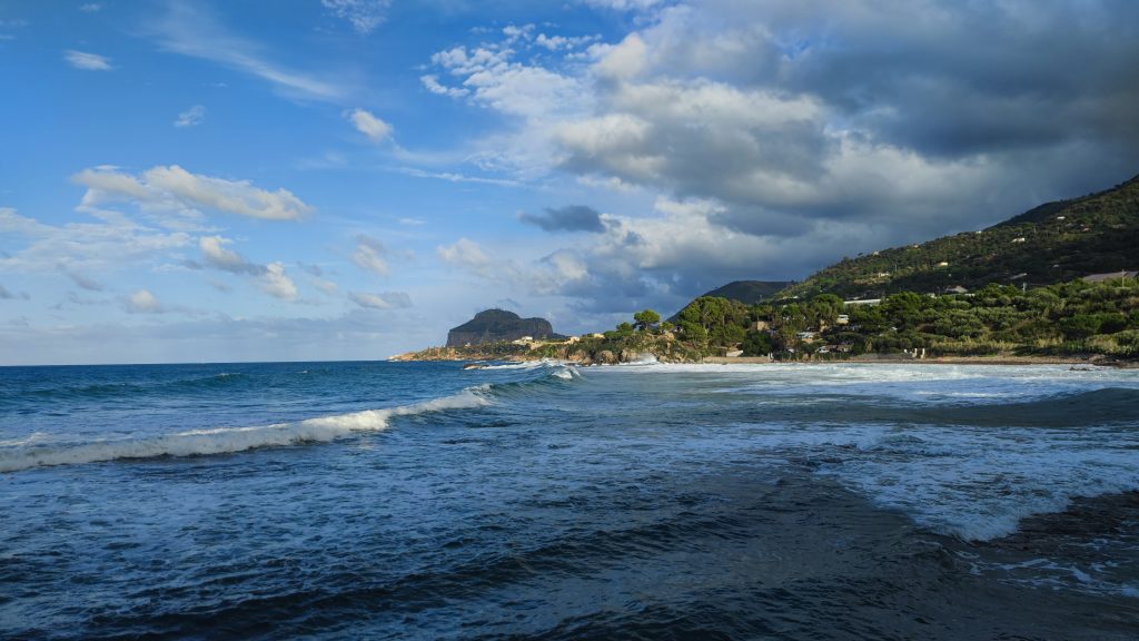 La plage de Mazzaforno est celle sur laquelle s’ouvre notre camping. La mer a été très agitée ici ces 2 derniers jours, peut être les restes de la tempête Kirk ? Les grosses vagues nous ont valu quelques bains bien énergiques à se faire rouler dans l’écume.